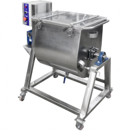 Маслоизготовитель состоит из каркаса, дежи, крышки, мешалки, мотор-редуктора, состоящего из двигателя и редуктора, и устройства фиксирующего.
