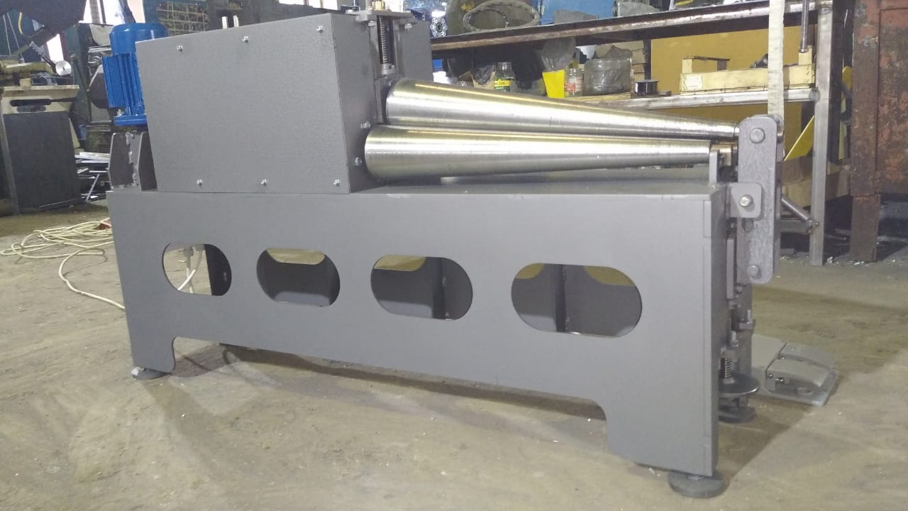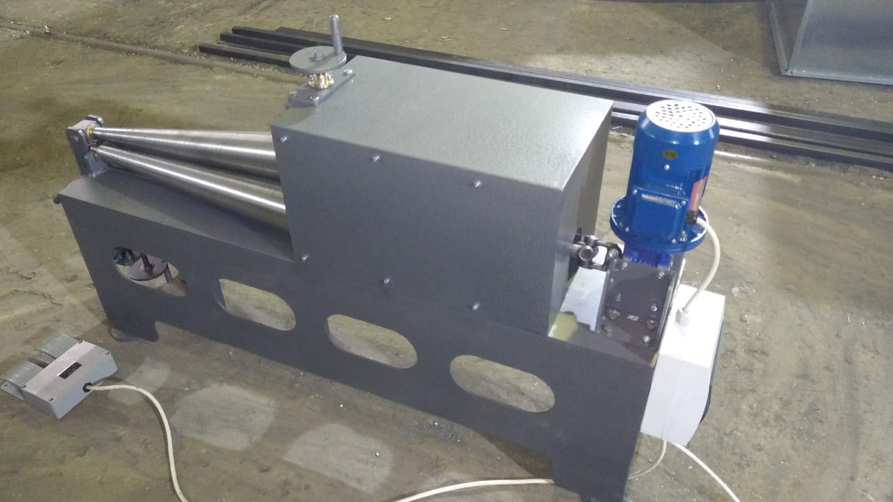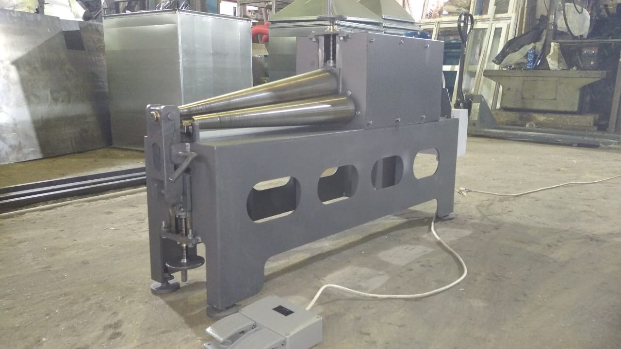 Вальцы оснащены закаленными и полированными валами с реверсивным электроприводом всех трех валов, что исключает проскальзывание детали. Прижимной вал имеет быструю регулировку по высоте с обоих концов, что позволяет точно настраивать угол под конкретную деталь. Система быстрого съема позволяет быстро и без повреждений снять готовую деталь, не меняя настроек станка. Вальцовка конуса на вальцах!