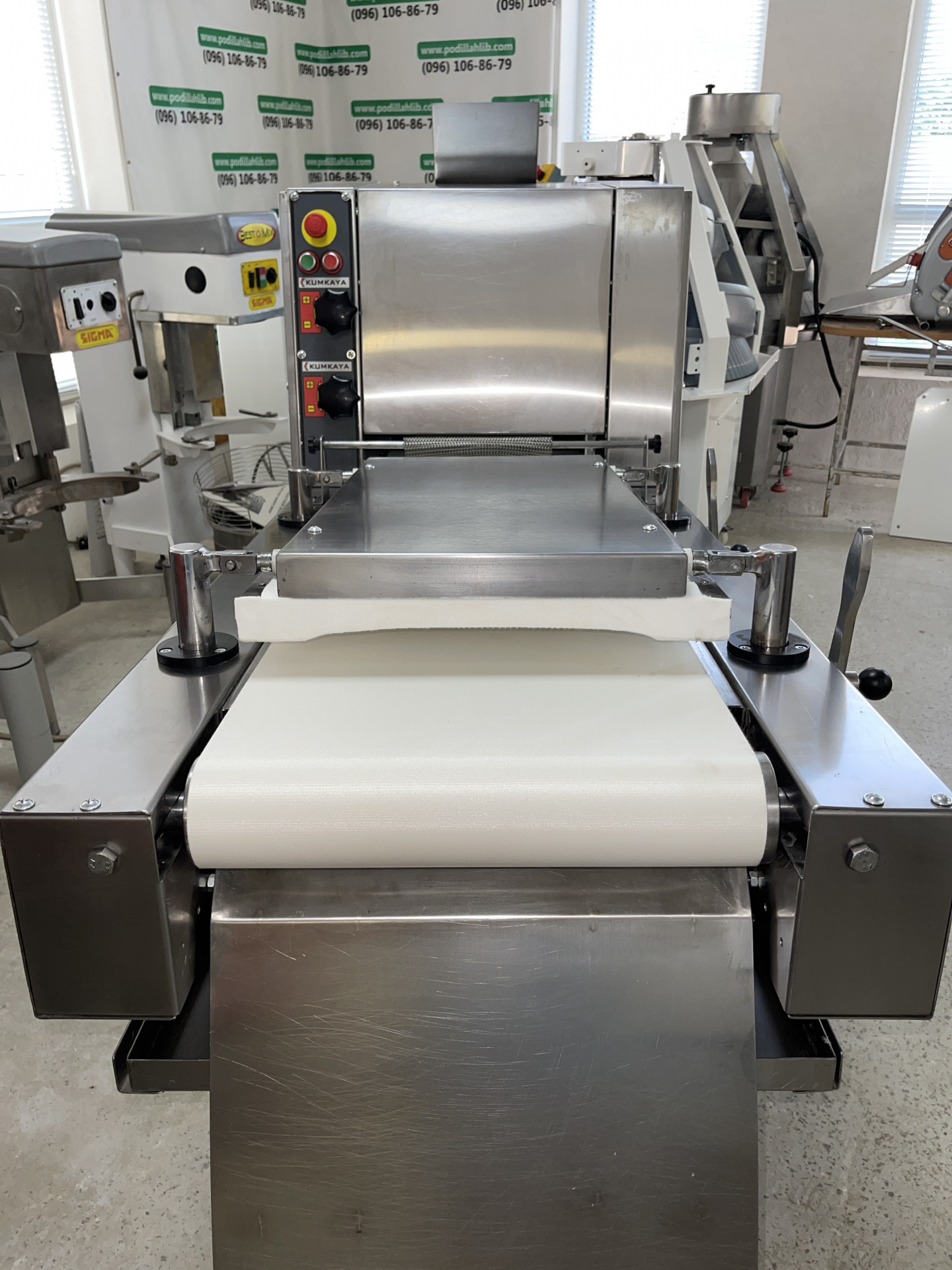Тістозакаточні машини призначені для надання остаточної форми заготовкам з тіста. В процесі руху по конвеєру, заготовка приймає циліндричну форму. Пресовочна подушка легко налаштовується для отримання опуклої або пласкої поверхні виробу. Система централізації направляє тісто строго по центру, що гарантує правильну і симетричну форму.