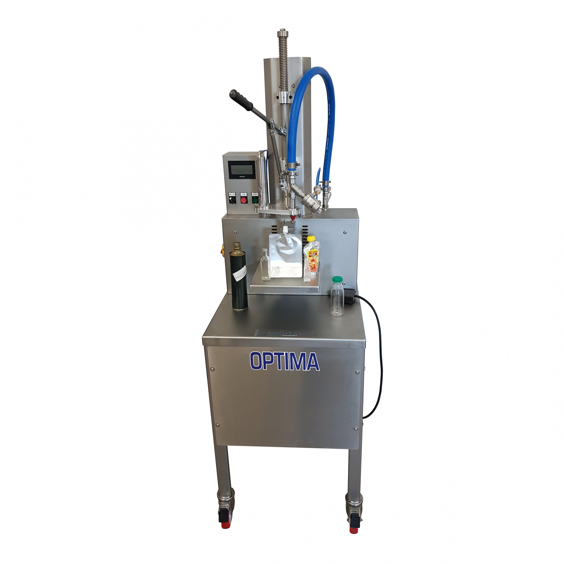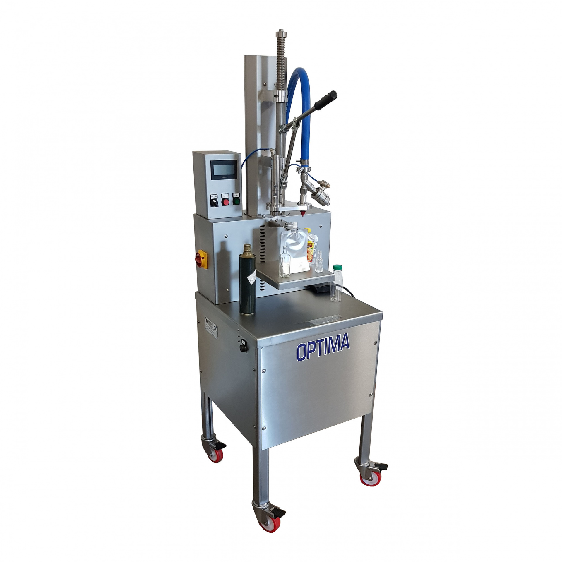 OPTIMA –это профессиональный дозатор с самообучением, который подходит для дозировки пищевых или промышленных жидкостей, фильтрованной или густой жидкости, способной удовлетворить разнообразные потребности в емкости тары, скорости наполнения, точности уровня наполнения, типа используемой тары. Возможностей использования несколько: разлив пищевых жидкостей (масло, вино, соки), косметика (эфирные масла), очищающие жидкости (на спиртовой основе также). Минимальная емкость составляет 8 миллилитров, тогда как максимальная емкость ограничивается только размером используемой емкости, совместимой с размером оборудования. Данный аппарат позволяет розливать в стеклянную, алюминиевую, гибкую тару а так-же ПЭТ-бутылки (как на фото).