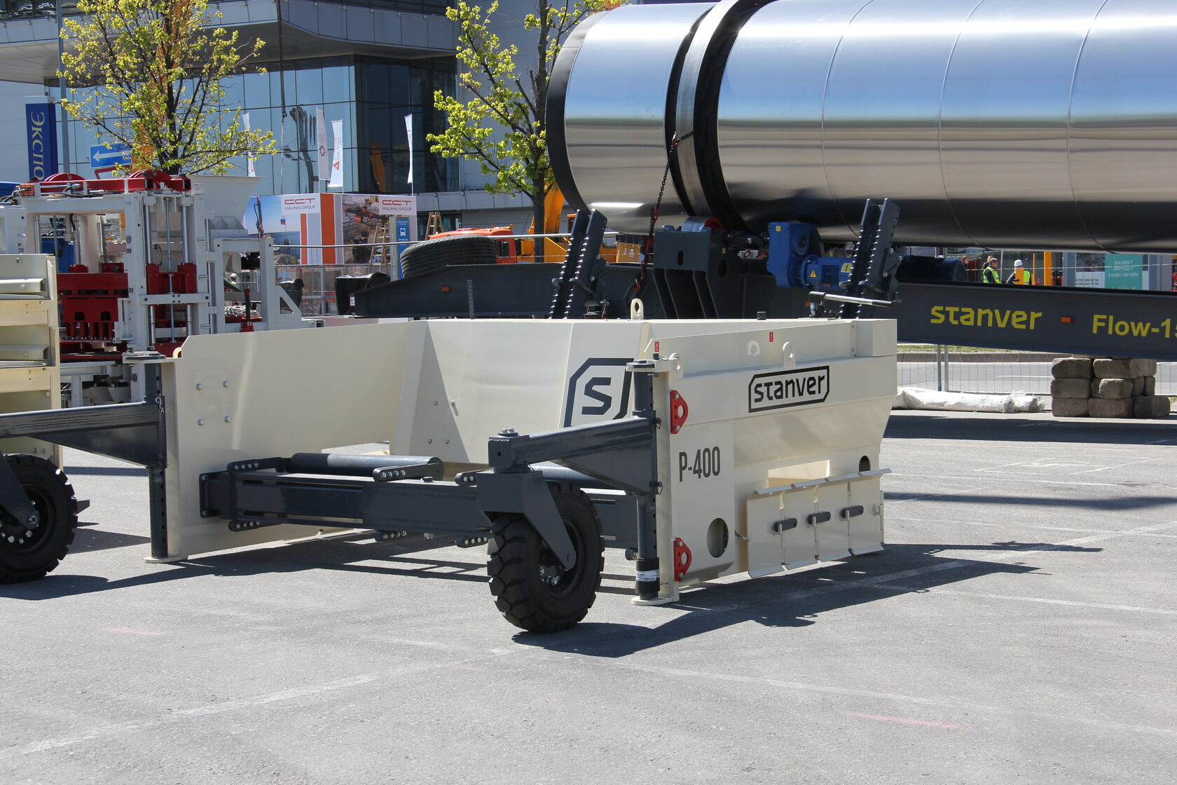 Укладчик оснований Р-400 дорожный инструмент, который позволяет равномерно распределять материалы в диапазоне от 3,2 до 4,88 метра в ширину и от 50 до 500 миллиметров в высоту.