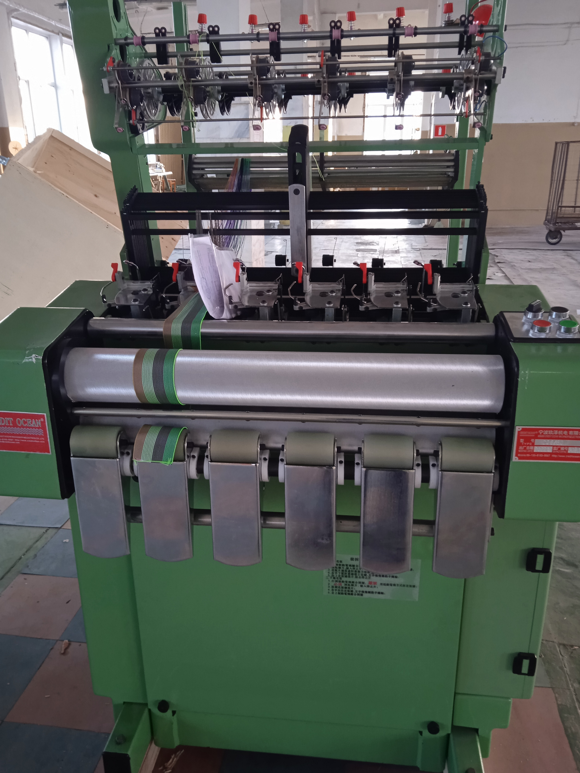 1.Лентоткацкая машина 6 ручьëв.Состояние новая. В комплекте с навойной рамой на 14 катушек