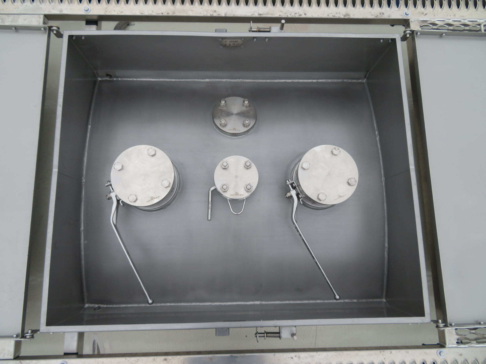 | Нижнее устройство слива (налива) груза | Последовательно установленные внутренний 3” 45° донный клапан и 3” зажимной поворотный кран (наружный клапан) и выходной патрубок с резьбой 3"BSP и резьбовой крышкой |