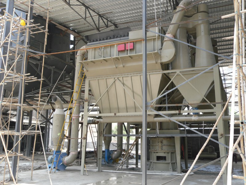 В состав комплекса входят: молотковая дробилка для предварительного дробления, ковшовый элеватор, промежуточный бункер, вибропитатель, мельница HGM со встроенным классификатором, блок циклонов, атмосферный фильтр импульсного типа, вытяжной вентилятор, комплект газоходов.