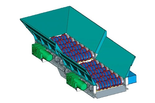 Каждый ролик включает в себя эллиптические пластины из износостойкой стали («Hardox»), которые позволяют сортировать материалы еще с более высоким процентом содержания липких примесей и влаги. Расстояние между пластинами – это один из параметров, который регламентирует класс «подрешетного» продукта сортировки. В стандартном исполнении приводами валкового грохот-питателя являются мотор-редукторы. За счет программного управления движением роликов достигается наибольший эффект при разделении трудно сортируемых материалов за счет возможности плавной регулировки скорости, остановки и реверса на каждом каскаде (ярусе) в отдельности.