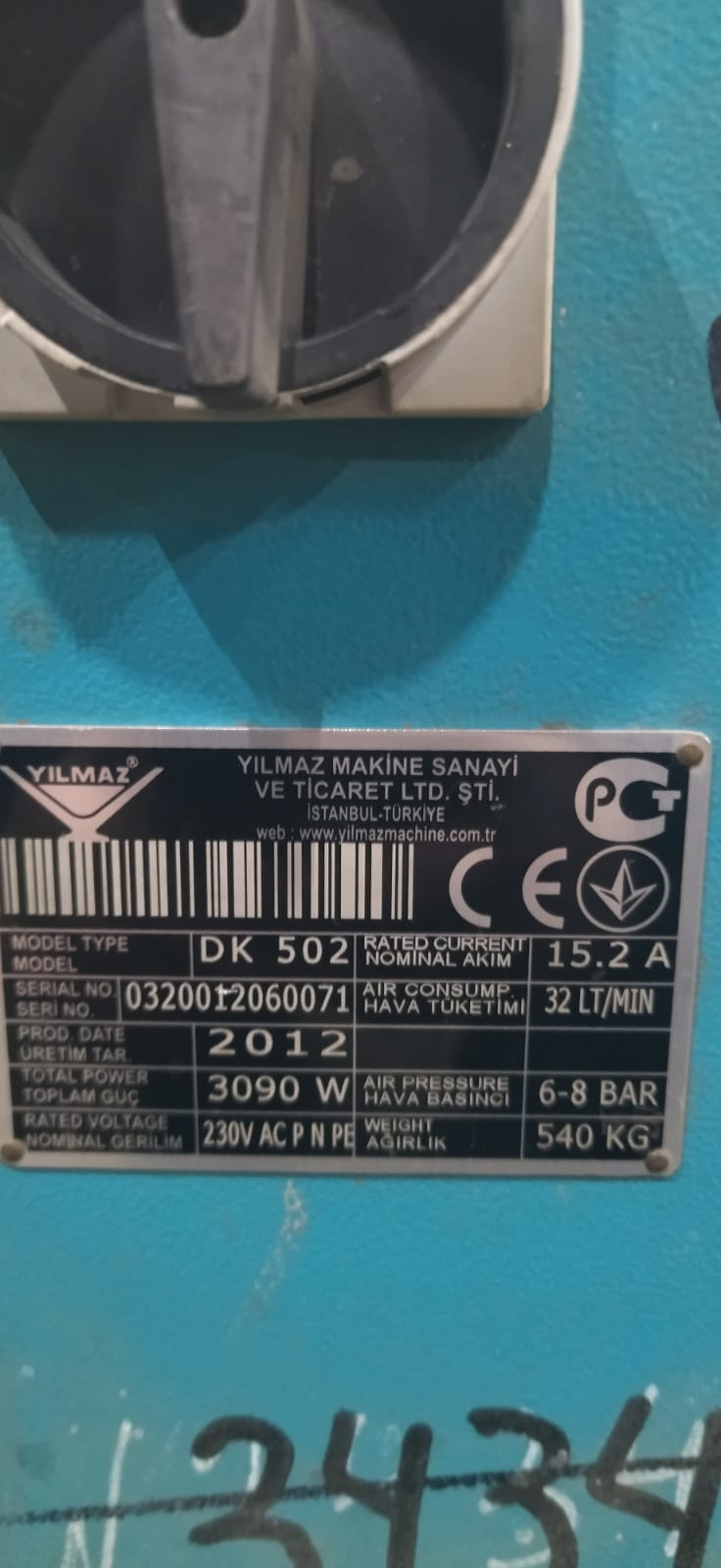 Сварочный станок 0320012060071 Yilmaz DK 502 2011г.в.450000руб.