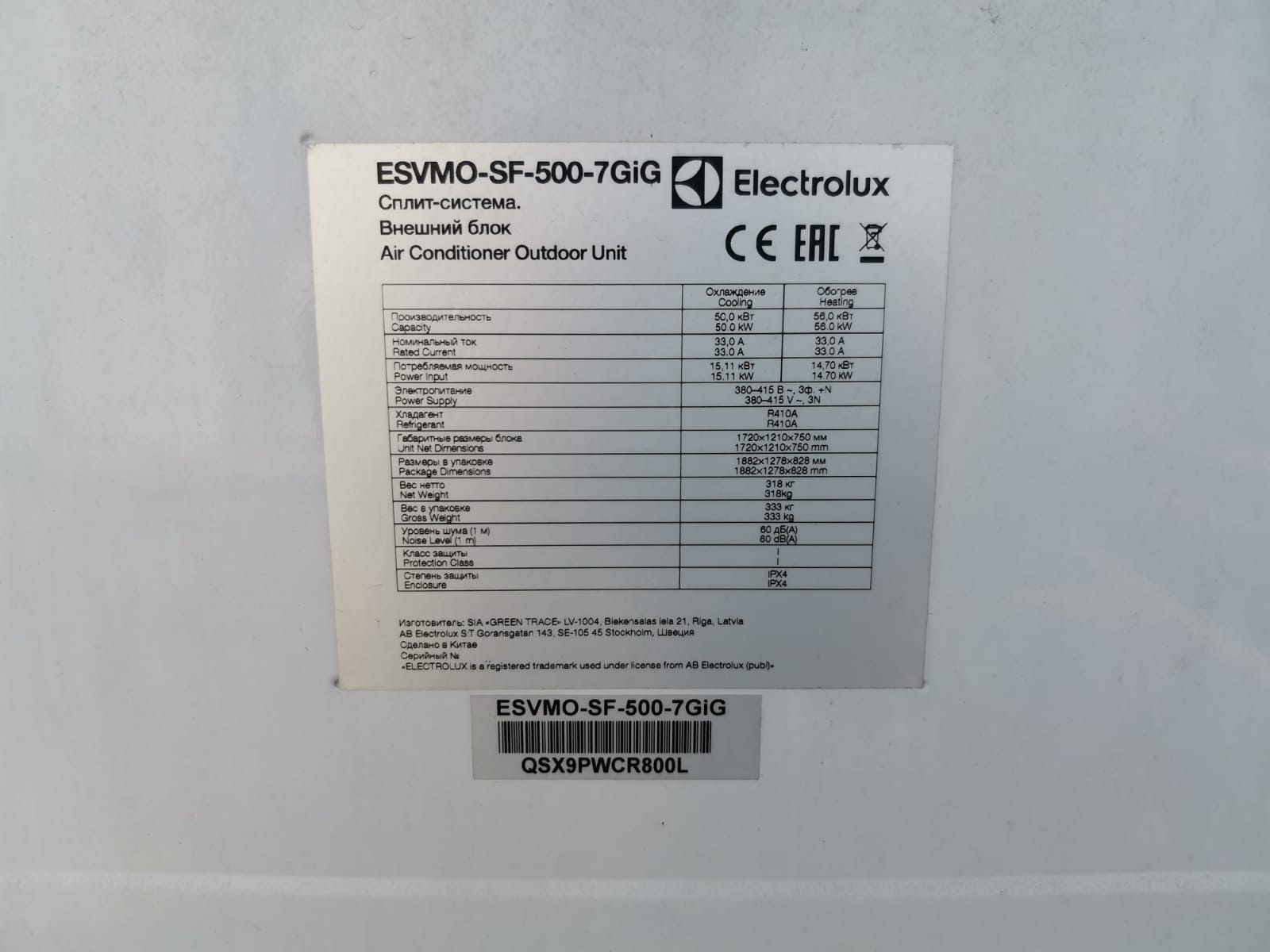 ELECTROLUX Наружный блок: ESVMO-SF-500-7GiG - 3шт