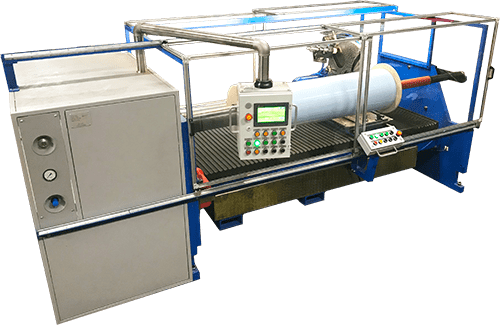 Автоматическая рулонорезательная машина предназначена для резки рулонов без перемотки различных видов клейких материалов, спанбонда, изоляционных и вспененных материалов. На пульте управления оператор задает все необходимые параметры (ширину реза, количество резов, цикл заточки ножа, скорость подачи ножа, направление и скорость вращения ножа и рулона), затем нажимает на кнопку «пуск», после чего рулон разрезается в автоматическом режиме.