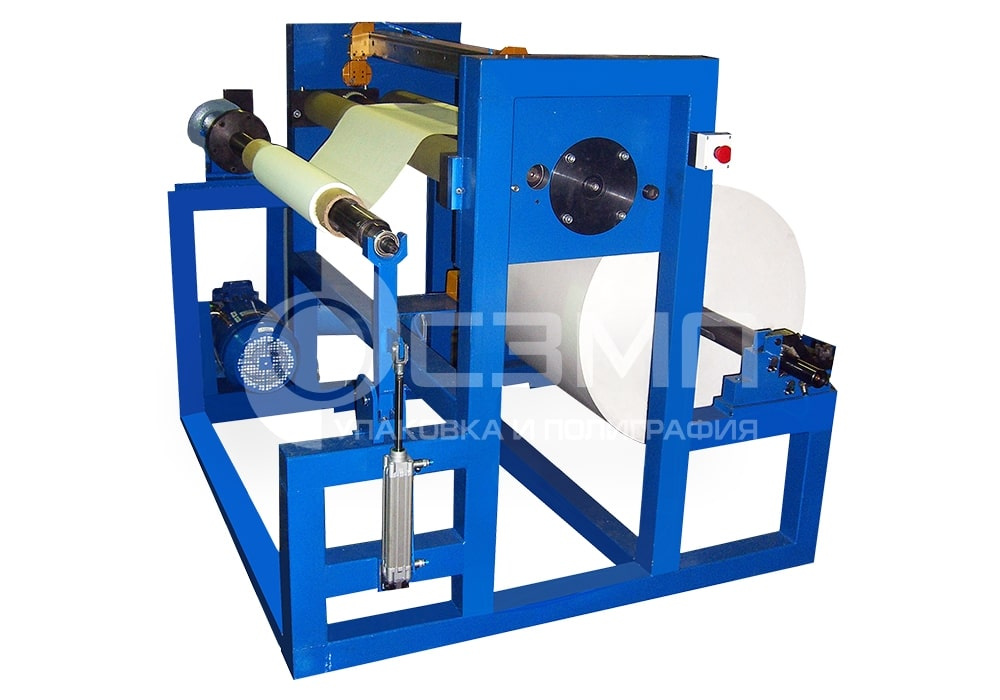 Машина предназначена для перемотки различных рулонных материалов. Данная модель позволяет в процессе перемотки обрезать кромку рулона и при необходимости разрезать рулон на две части.