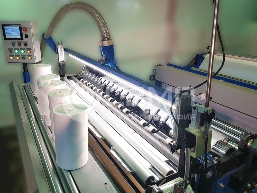 Станок предназначен для перемотки нетканого и вискозного полотна, а также других рулонных материалов с нанесением перфорации.