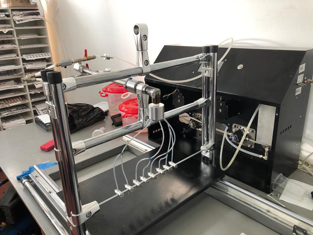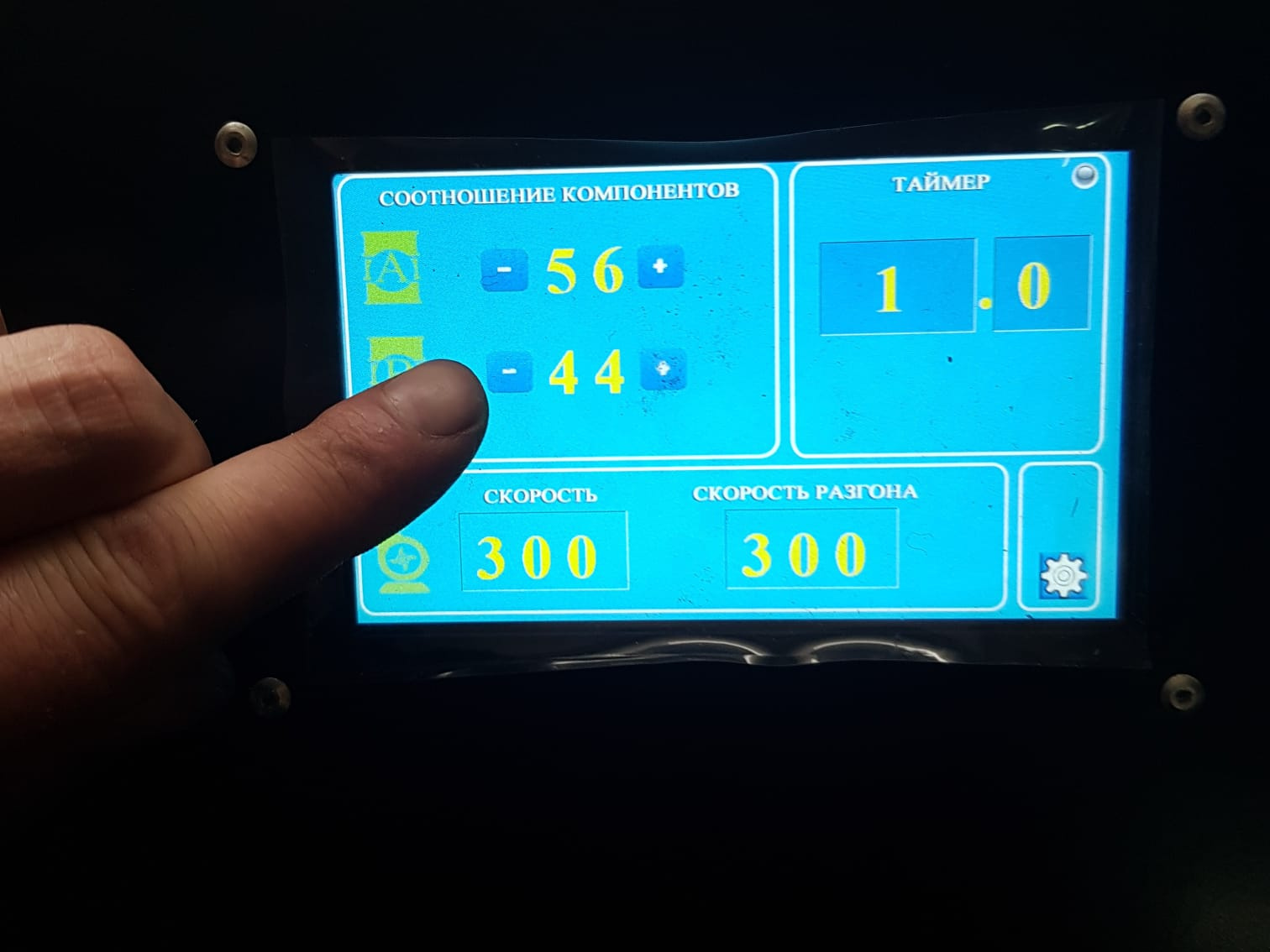 - Програмное управление соотношением компонентов, скоростью подачи.