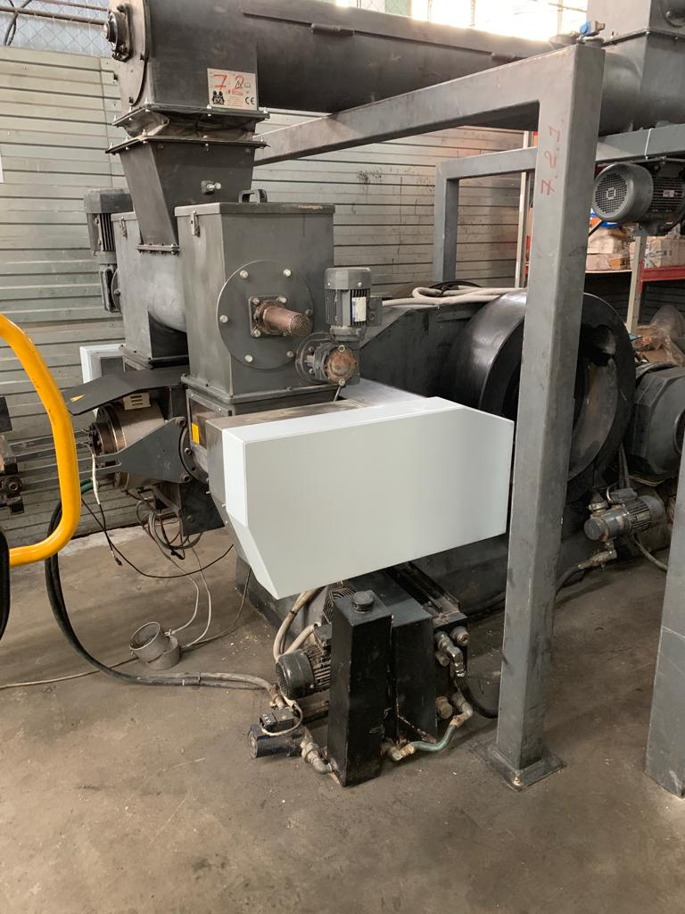 2 компрессионных винта, которые предварительно сжимают сырьё и проталкивают его перед поршнем, для обеспечения равномерную подачу на каждый ход поршня, обеспечивая оптимальную производительность и наилучшее качество брикета. Каждый компрессионный винт приводится в движение двигателем 5,5 кВт, 1450 об./мин., 3х400 В, 50 Гц.