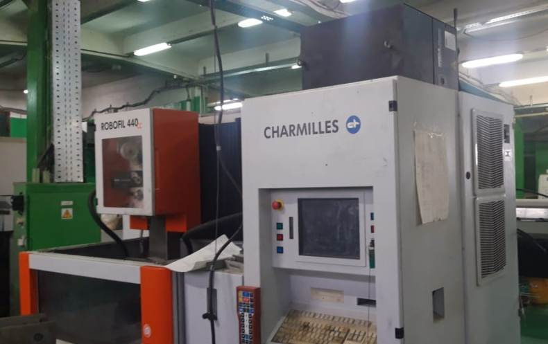 - CHARMILLES Robofil 440 CC - станок электроэрозионный проволочно-вырезной 5-ти осевой б/у, 2006 г.в. Осевые перемещения x*y*z - 550*350*400 мм, по оси U (+ -) 550 мм, по оси V (+ -) 350мм; размеры стола - 1200*700 мм; нагрузка на стол - 1500 кг.