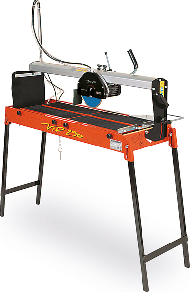 Плиткорез электрический (плиткорезный станок электрический мостового типа) NUOVA BATTIPAV VIP 260 / 290 с водяным охлаждением режущего алмазного диска предназначен для прямой (до 950 мм) и диагональной (до 630 × 630 мм) алмазной резки керамической плитки одинарного и двойного обжига, а также керамогранита, с максимальной глубиной алмазной резки до 40 мм, под прямым углом и под углом 45°. Широко применяется в строительном комплексе при отделочных работах.