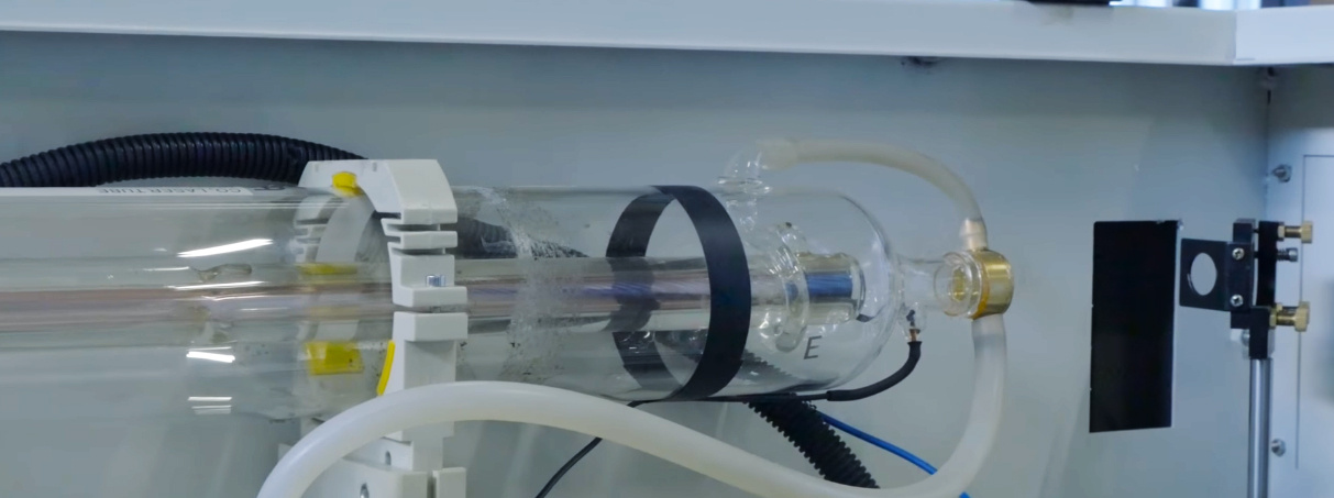 Рабочее поле станка имеет габариты — 1200×900 мм и ручной подъемный стол, покрытый алюминиевыми ламелями, но возможна установка сотового покрытия. Для обработки цилиндрических заготовок на данную модель станка устанавливается поворотное устройство. Лазерная трубка мощностью 100-110 Вт (7500 часов), при желании можно установить более мощную трубку.