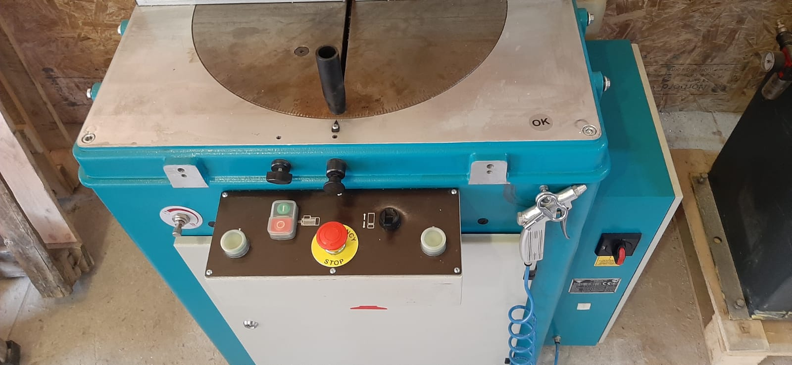 Пила одноголовая используется для резки заготовок из ПВХ и AL профиля. Высокое качество разреза гарантируется регулируемой гидропневматической подачей пильного диска, которая обеспечивает высокую плавность движения пильного диска. Используя градуированную шкалу можно изменять угол резки можно в пределах от -45° до +60°, при этом есть жесткий фиксатор стандартных промежуточных углов -45°, -30°, -22,5°, -15°, 0°, 15°, 22.5°, 30°, 45°, 60°. Фиксация заготовки осуществляется с помощью двух вертикальных пневмоприжимов, при необходимости можно укомплектовать пилу дополнительными горизонтальными пневмоприжимами. Управлением циклом отпила осуществляется с помощью кнопочного пульта управления расположенного на станине станка.