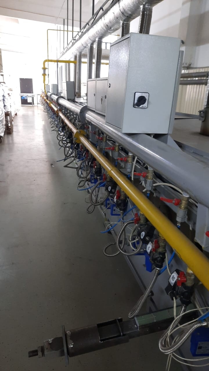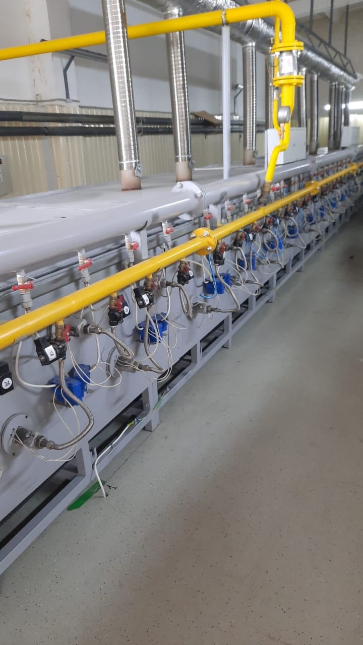 На каждую горелку установлен блок поджига и контроля горения. Блок контроля дает сигнал на отключение подачи газа в случае отсутствия горения горелки. Отключение и включение подачи газа осуществляет промышленный газовый клапан. Газоиспользующие печи оборудованы системой пароотвода.