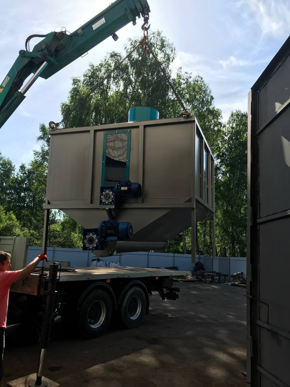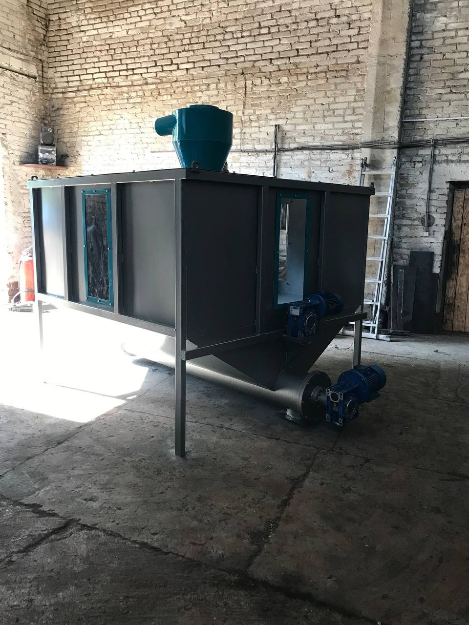 Бункер-накопитель предназначен для временного накопления и последующей дозированной подачи сыпучих не слипающихся материалов шнековым конвейером. В комплектацию входит механизм ворошения, обеспечивающий вращение вертикальных лопастей для предотвращения зависания сырья в бункере. Есть смотровое окно для наблюдения за работой ворошителя.