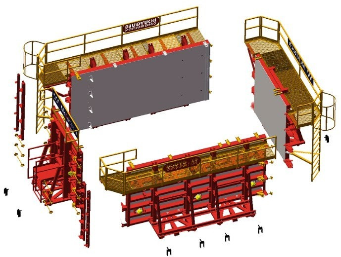Данные формы оснащены гидравлической системой для автоматического открывания внешних стенок и усадки внутреннего стержня за считанные минуты, что позволяет извлекать изделие из модулей и повторно собирать их в рекордно короткие сроки, что позволяет производить одно изделие в день без использования каких-либо «ускорителей» для затвердения бетона, и до двух изделий при использовании системы отопления.