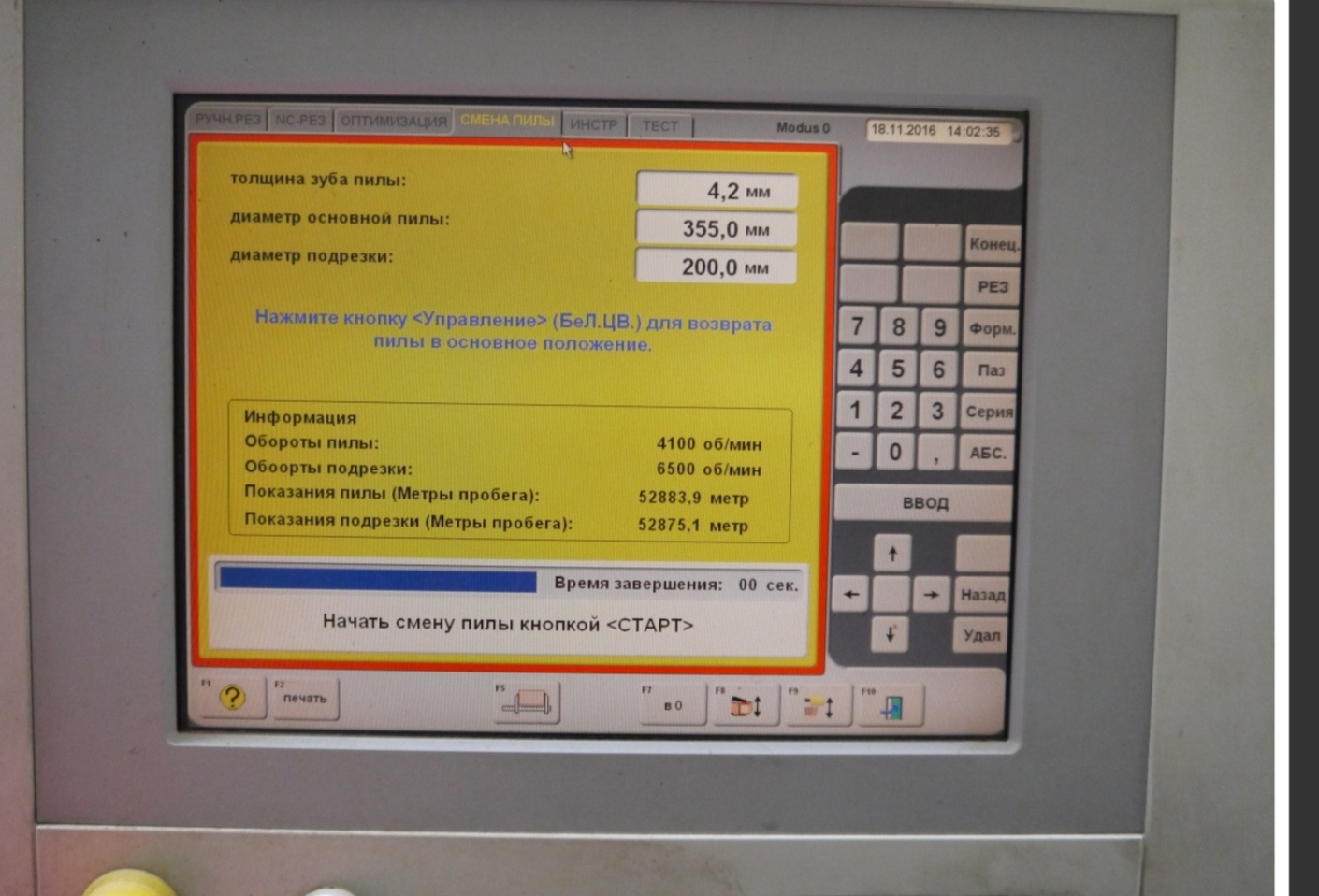Длина пропила: 4400мм, длина до шибера - 4300 мм. Выступ пильного полотна - 82 мм. Высота пропиливаемого материала - 70 мм. Диаметр пильного полотна - 350 мм, диаметр пильного полотна подрезателя - 200 мм.
