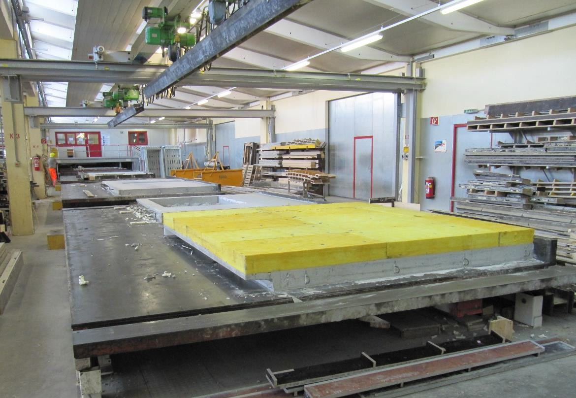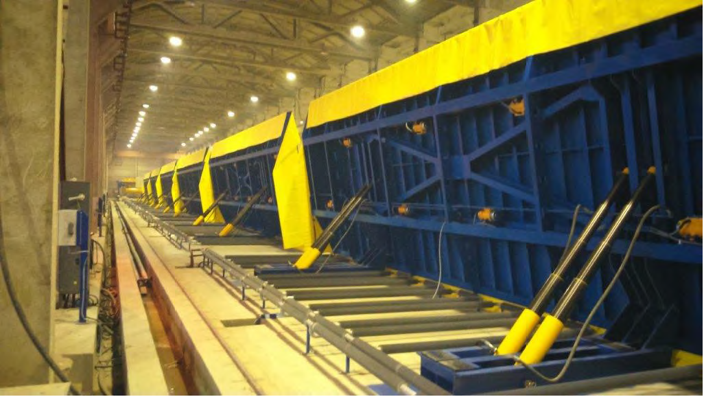 Получение различных размеров панелей производится при помощи переналаживаемой опалубки на формовочной поверхности обоих секций оснастки.