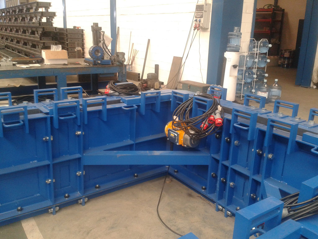 Модульная формооснастка для вибропрессования сборных ЖБИ для составления лифтовых шахт, соединяя различные части с помощью торцевых арматурных выпусков с центрированием по буртику.