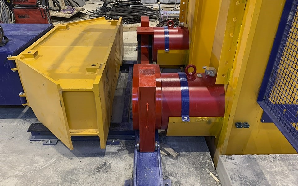 Активная сторона имеет аналогичную стальную жестко закрепленную конструкцию, где расположены цилиндры снятия напряжения для ослабления преднапряженных арматурных канатов после завершения выдержки готового ЖБИ, обеспечивая полную безопасность процесса.