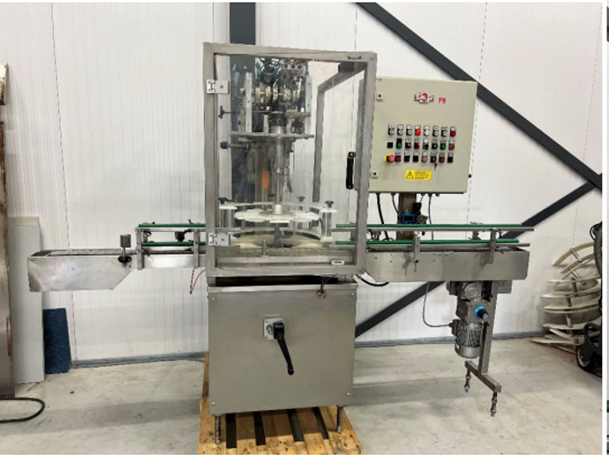Kugler K 708 Полуавтоматический укупорщик для бутылок с завинчивающимися крышками, регулируемая механическая скорость от 800 до 4000 в час, закрывающая головка пистолета и регулировочная скользящая муфта без инструментов, 21/2 метровая конвейерная лента, ширина около 88 мм, год изготовления неизвестен, электропитание 400 вольт, сжатый воздух 6 бар.