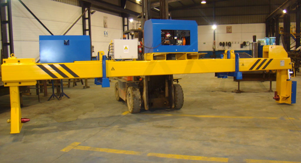 Этот кантователь может работать в связке с вилочным автопогрузчиком или автономно с приводом от дизель-генератора. Он оснащен пультом дистанционного управления.