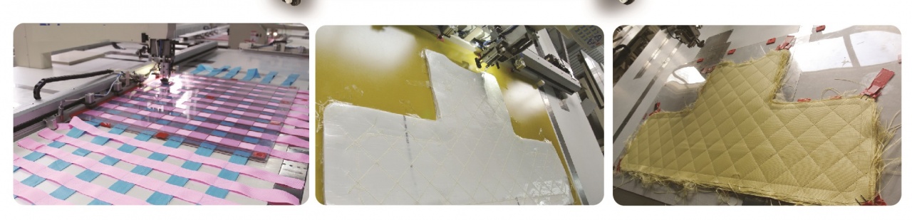 Автоматизированная одноголовочная машина используется для производства верхней одежды, технических и других изделий, где есть операции по сшиванию, настрачиванию, стеганию (например: производство мягкой мебели, обуви, кожаных сумок, рюкзаков, автомобильных сидений, обивки панелей, подушек безопасности, различных ремней и пр.)