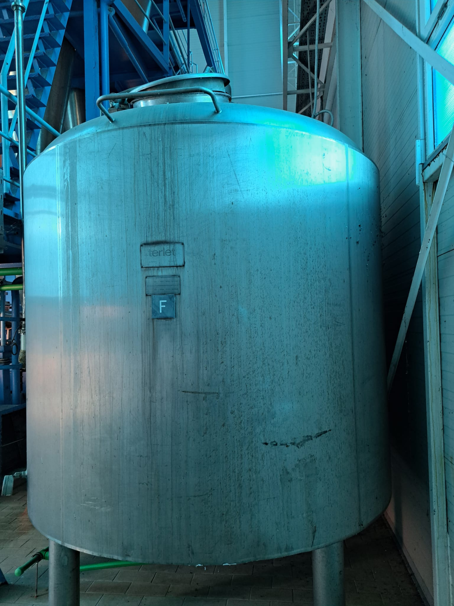 8. Технологическая емкость для производства йогурта емкостью 8 000 л с холодильником и примыкающими к нему насосами и арматурой;