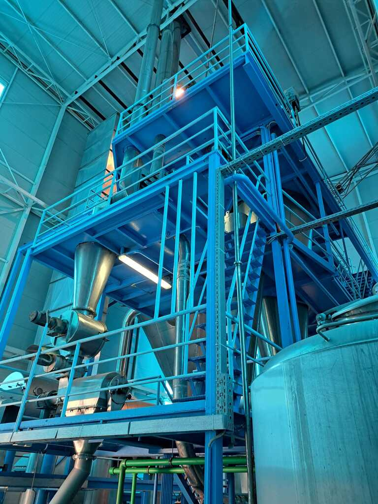 2. Атомайзер NIRO того же производителя с растворимым порошком сыра и вспомогательными башнями для растворимого, диффузор со сменным диффузором, циклонами, водяными и другими насосами;