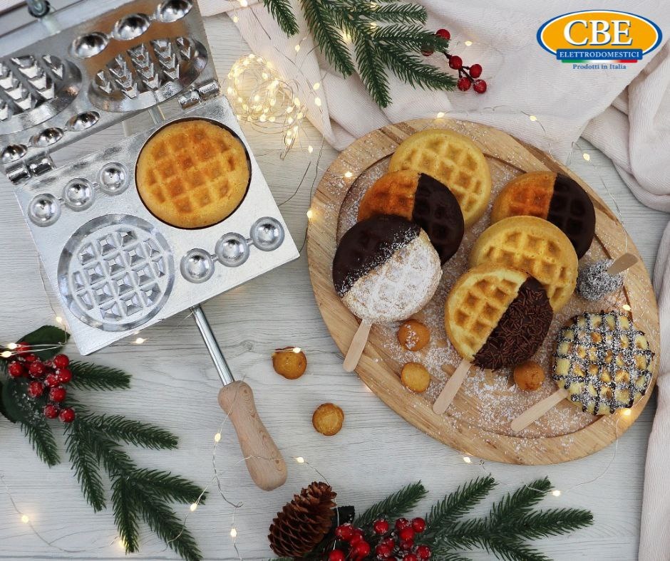 Электрическая вафельница CBE Elettrodomestici 5050200 электровафельница круглые, бельгийская венская форма вафель, толщина 10+10 mm и 6 шариков