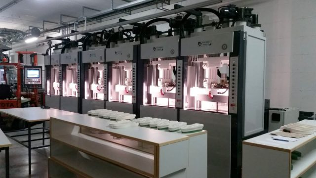 Итальянский производитель с опытом работы более 20-ти лет, предлагает весь спектр одноцветных, двухцветных и трехцветных машин для производства подошв из ТР, ПВХ, ТПУ, РЕЗИНЫ и ЭВА.