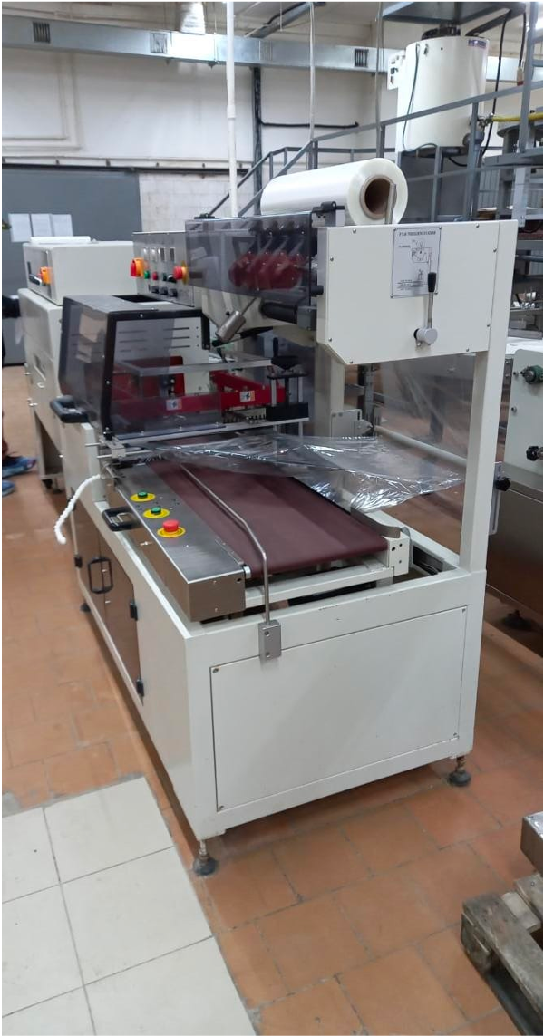 - Автоматическая подача продукта, обертывание в пленку, запайка с отрезкой и последующей усадкой в термотоннеле