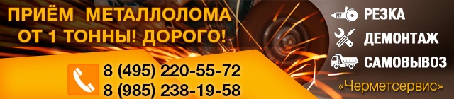 Чермет Сервис на постоянной основе приобретает лом черных и цветных металлов по максимально высоким ценам! Компания Чермет Сервис производит резку металлоконструкций любой сложности, осуществляет вывоз от одной тонны лома своим автотранспортом! Нам можно сдать на металлолом непригодные трубы, балки, шпунт, двутавр, арматуру, рельсы, чугунные станки, оцинковку и другие отходы черного металла! Прием черного и цветного лома. Закупаем деловой лом. Работаем ежедневно.