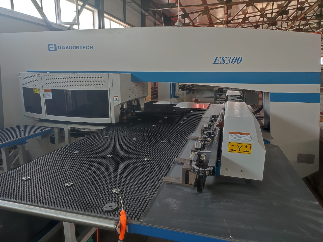 Координатно-пробивной пресс DARDONTECH серии ES300. Широко используется в производстве изделий из тонких листов низкоуглеродистой стали, алюминия, нержавеющей стали и др., таких например как электрические шкафы, алюминиевый шпон, коммерческая и другая мебель и другие корпусные изделия.