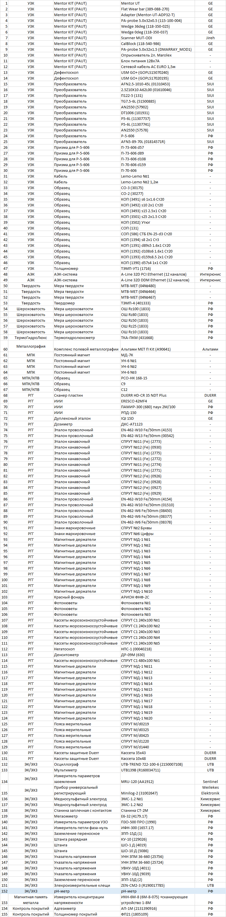 | 4 | УЗК | Mentor KIT (PAUT) | PA-probe 5.0x32x0.5 (115-100-004) | GE |