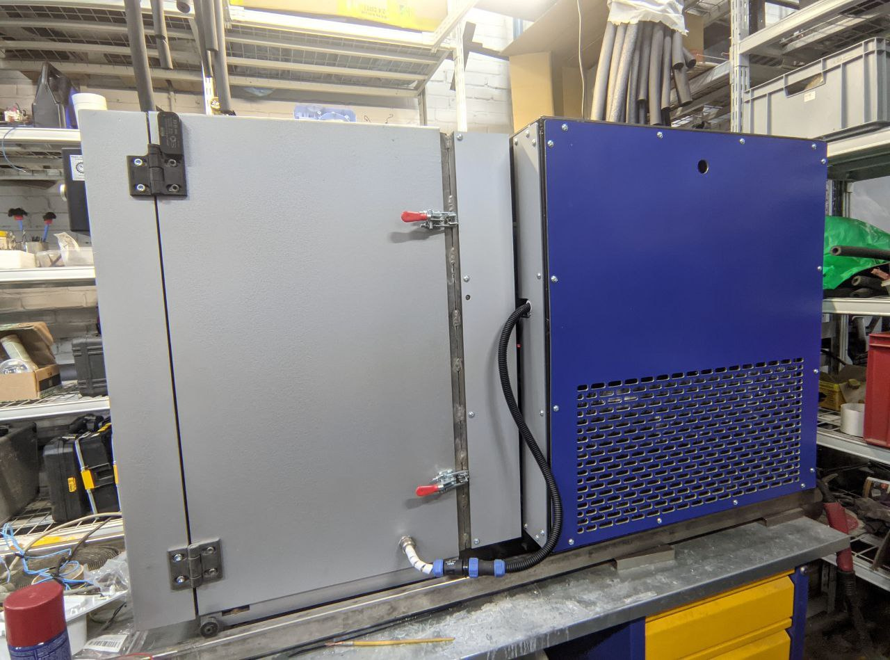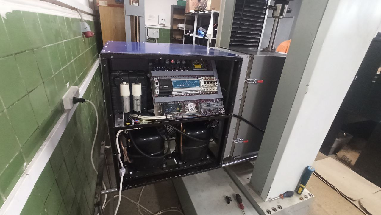 - Способ установки терморикомеры в верхней рабочей зоне испытательной машины: на жесткой раме, установленной на колеса (возможность при необходимости откатить. термокриокамеру).
