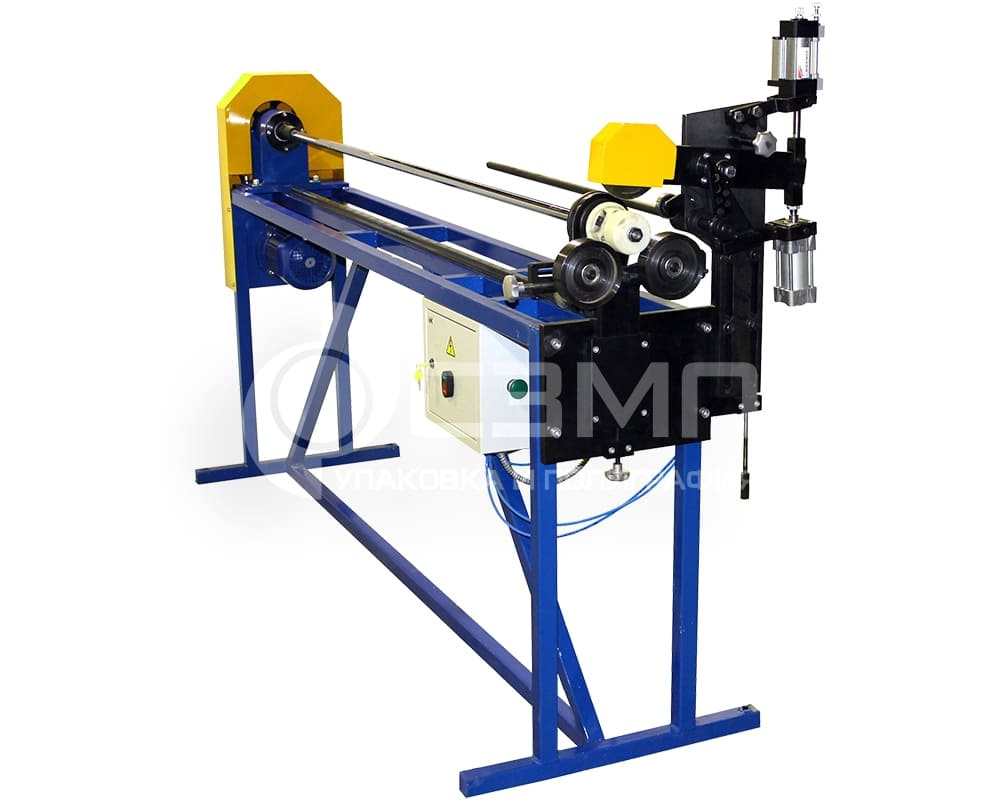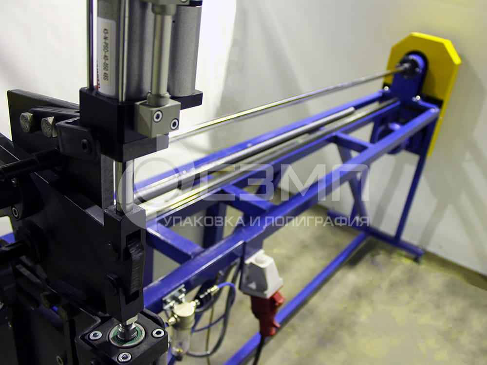 Станок для резки картонных гильз с пневматическим приводом подачи ножа. В данной модели станка ширина реза выставляется вручную, подача ножа осуществляется при нажатии на кнопку пневмоприводом. Особенностью станка является возможность резки картонных гильз внутренним диаметром до 305 мм.