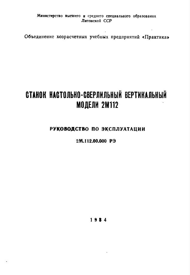 Станок настольно-сверлильный вертикальный модели 2М112 руководство по эксплуатации на 41 стр.