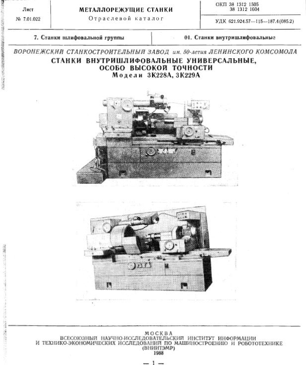 Станки внутришлифовальные универсальные, особо высокой точности модели 3К228А, 3К229А описание с характеристиками на 8 стр.