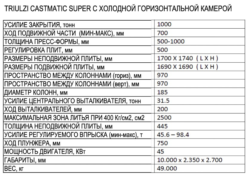 - Машина литья под давлением TRIULZI с узлом впрыска, узлом смыкания и основанием;