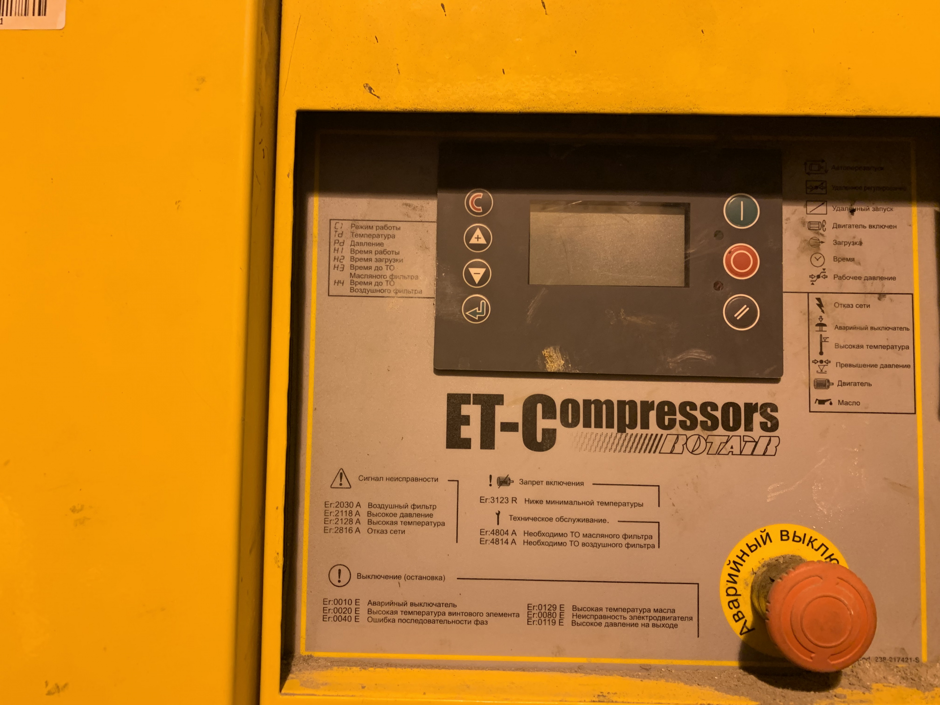 - Кнопка аварийной остановки на панели управления