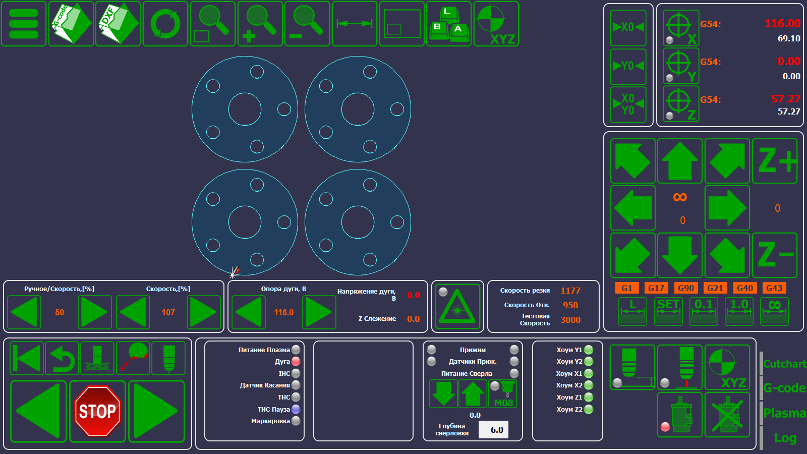 Русскоязычная система ЧПУ машины термической резки " AMS-Plasma.3015.Spiro" имеет интуитивно понятный пользовательский интерфейс. Такая система ЧПУ делает " AMS-Plasma.3015.Spiro" простой в использовании даже для новичков, а подготовленная в соответствии с ГОСТ техническая документация на станок существенно облегчает эксплуатацию нашего оборудования.