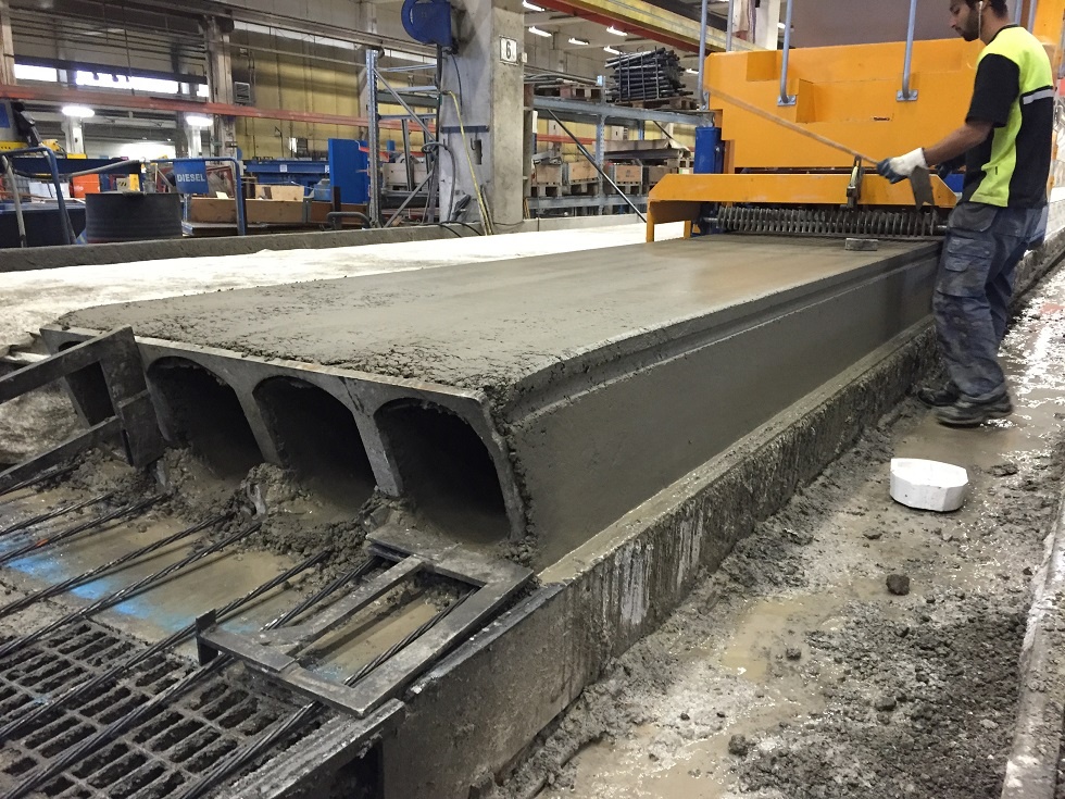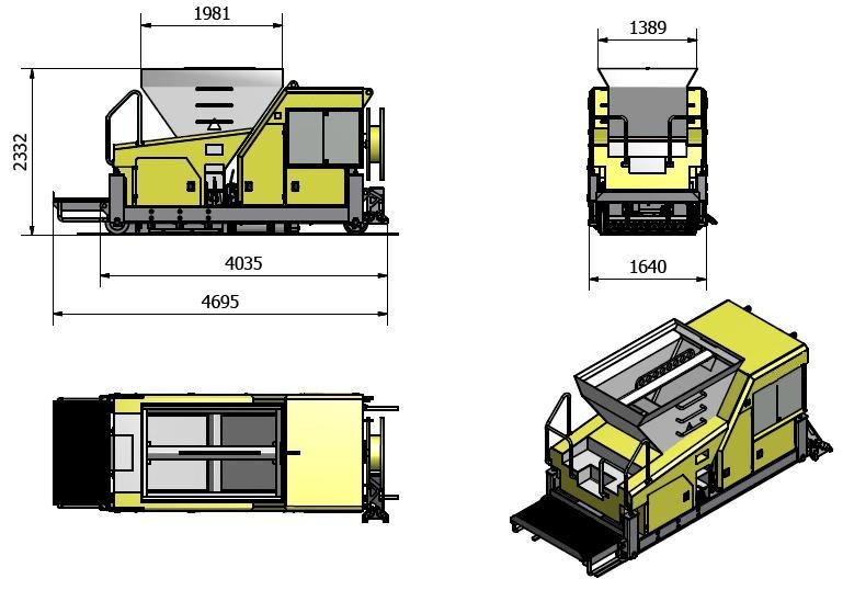 Экструдер разработан для производства плит с поперечными сечениями от 150 до 500 мм со стандартной шириной 1200 мм. Регулировка высоты отливки обеспечивает легкость корректировок, необходимых для учета различных степеней огнестойкости конечного продукта или при отливке поверх теплоизолирующего слоя. На экструдере предусмотрена платформа для прохода над плитой. Легкий доступ к хопперу.