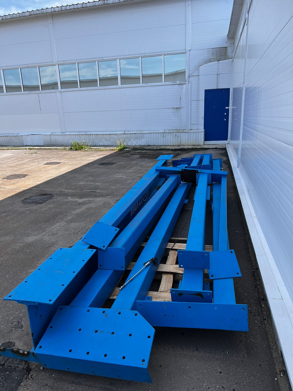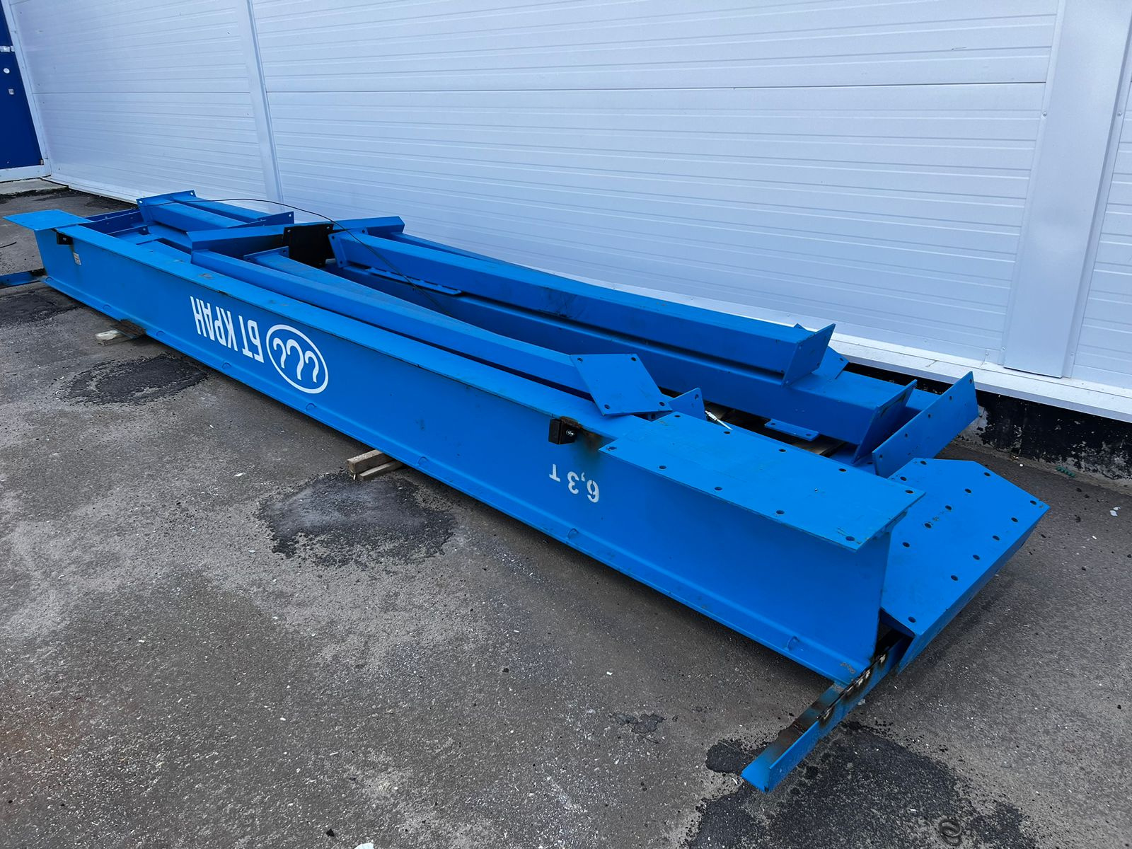 Мобильное перегрузочное устройство (МПУ) электрическое, перемещение по полу (тип В) г/п 6,3 т пролет 6 м высота конструкции 6,75 м, скорость передвижения до 20 м/мин, У3, -20...+40°С, в комплекте 2 мотор-редуктора (по одному на каждой ноге), частотное регулирование, общепромышленное исполнение, приводные колесные блоки и мотор-редукторы производство Болгария, разборная конструкция опор, радиоуправление (F24-8D, двухскоростное 8 кнопок)