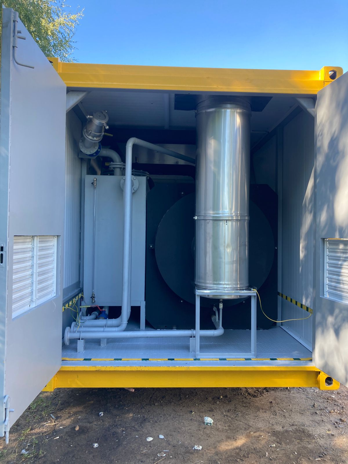 - контейнер с установкой звукоизолирован, уровень шума не превышает 78 дБ на расстоянии 7м;