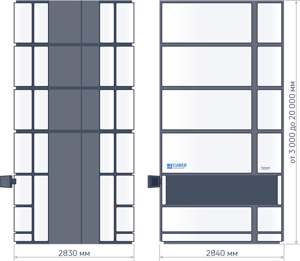 Лифтовой склад-накопитель CUBER — предназначен для хранения любых товаров в любой промышленной отрасли и торговле, позволяет существенно экономить наземную площадь хранения за счет максимального использования пространства в высоту.