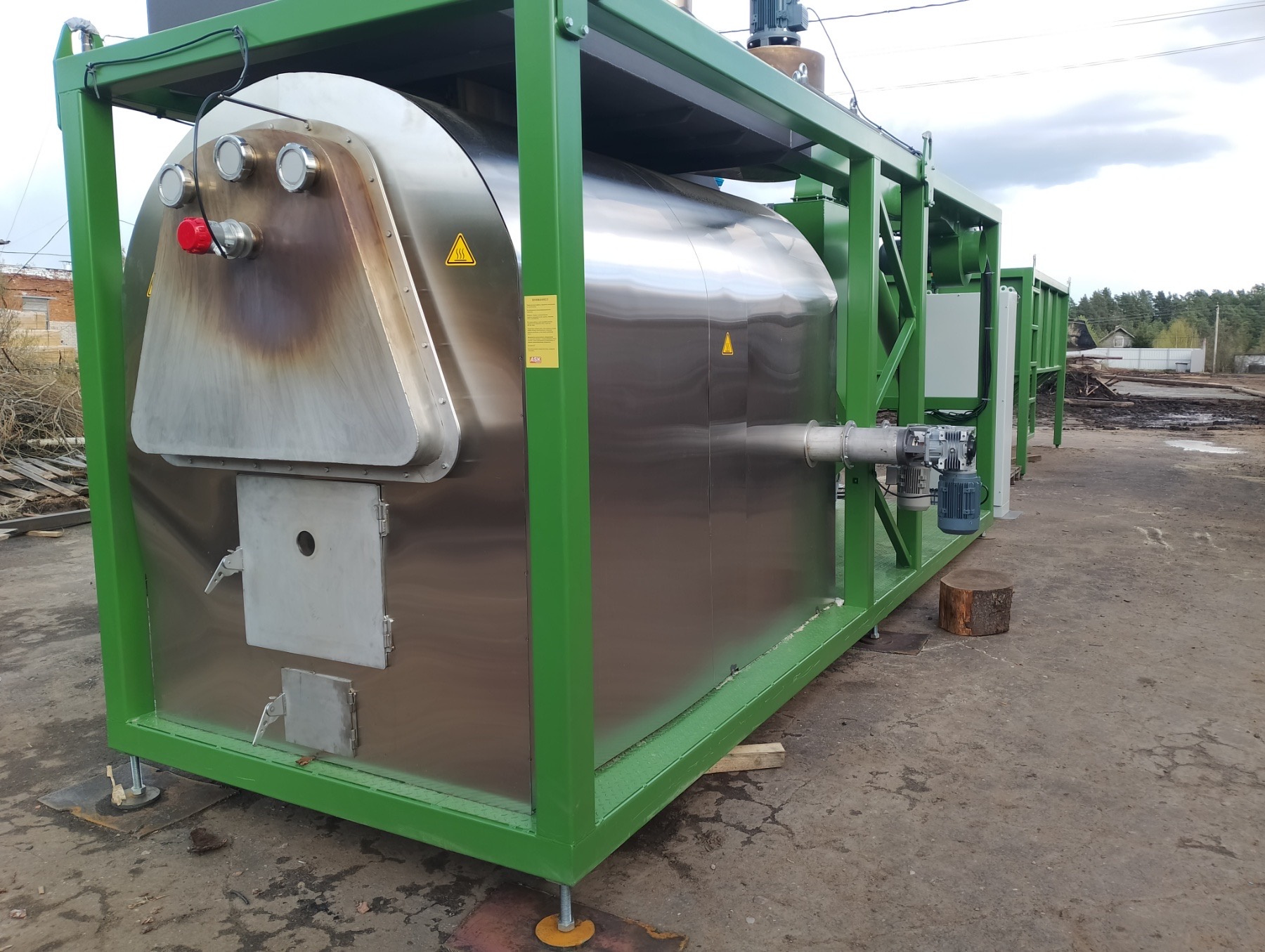 Высокотехнологичное, энергоэффективное оборудование, позволяющее перерабатывать древесные, сельскохозяйственные отходы и производить древесную угольную крошку стабильно высокого качества в промышленных масштабах. В процессе работы тепловая энергия от сгорания пиролизных газов не выбрасывается в окружающую среду, а используется для программно-управляемого протекания процессов пиролиза, для предварительной сушки древесины, а так же для внешних потребителей. Производительность комплекса – до 5,0 т угольной крошки/сутки.